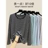 Striped Ice Silk Long Sleeved T-shirt for Women In Winter Thin and Loose Design Round Neck Versatile Knitted Sun Protection Cover Shirt