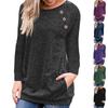 Dame Pure Color Pile Krage Knappet Langermet Tunika Topper Høst Vinter Løs Bluse Plus Size