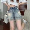 Discover the Summer 2025 Collection with these High-Waisted Ripped Vintage Wash A-Line Shorts for Women. Crafted from premium cotton, these shorts feature a flattering high waistline that offers both comfort and style. The sportive cut provides a relaxed and versatile fit, perfect for casual outings or active days. Characterized by their distinctive frayed decoration, these shorts exude a trendy, laid-back vibe, making them an essential addition to your summer wardrobe.