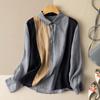 Discover the perfect blend of comfort and style with this elegantly designed women's shirt. Crafted from high-quality cotton, this shirt features a chic color block pattern that adds a modern touch to any outfit. The loose fit and long sleeves ensure a relaxed and comfortable wearing experience, while the unique drop shoulder design exudes effortless elegance. Completed with tailor neckline and intricate patchwork and quilted decorations, this shirt is a versatile addition to your wardrobe, perfect for both casual and semi-formal occasions.