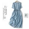 2025 Spring/Summer Women's V-Neck Belted Dress with Bow Print
