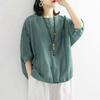2025 summer new plus size women's loose casual solid color imitation cotton and linen short sleeved T-shirt top half sleeved T-shirt for women