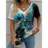 Women's T-Shirt Stripes And Floral Graphics Retro Fashion Classic Casual Short-Sleeved Oversized V-Neck Summer Women's Clothing