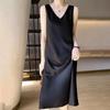 Satin V-neck suspender dress women's spring and summer sleeveless solid color vest long dress small black dress