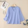 ZANZEA Women Casual V-Neck Solid Color Loose 3/4 Sleeve Blouse