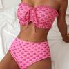Sexy badedrakt med delt kropp for kvinner Ensfarget trykt sløyfe med høy midje todelt badedrakt