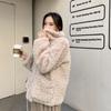 Women's Short Thickened One-piece Woolen Coat with Horns and Lambskin Winter