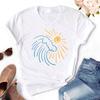Colorful Oil Painting Sun Beach Design Womens T Shirts Cotton Casual T Shirt Summer O-Neck Streetwear Soft Oversized Tops