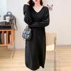 Autumn and winter new design V-neck knitted dress women's fashion thin with coat inside sweater long dress