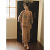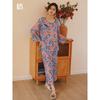 Pure Cotton Double-Layer Gauze Pajamas Women's Chinese Ancient Style Print Long Sleeves round Neck Chinese Style Plus Size Loose Homewear Suit