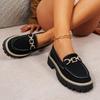 Fashion Spring New Flat Shoes Women's Fashion Round Head Deep Mouth Suede Metal Chain Thick Sole Non-slip Single Shoes