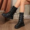 Fashion Luxury Women's Boots Pu Leather Ladies Mid-calf Boots Punk Gothic Biker Boots Side Zip Shoes for Women New Botines Para Mujeres