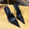 Fashion Solid Color PU Cross Back Strap Sandals Women Fashion Summer Shine Leather Pumps Slip on Pointed Toe Stiletto Heels Sandals