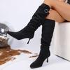 Fashion Elegant Black Pointed Toe Knee High Boots for Women Pleated Design Stiletto High Heels Botas Mujer 2025 Autumn Loose Long Boots