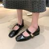 Fashion 2024 Fashion Flats Brand Design Square Toe Women Ballet Shoes Casual Buckle Strap Female Dress Shoes Low Heels Woman Shoes