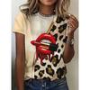 3D Leopard Print and Lipstick Print Short-sleeved Top Summer Casual Everyday Women's T-shirt Urban Street Fashion Women's Y2K