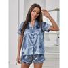Allover Heart Print Satin Pajama Set Casual Short Sleeve Button Up Lapel Collar Top & Elastic Shorts Women's Sleepwear & Loungew