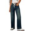Womens Wide Leg Flare Jeans Casual Drawstring High Waist Vintage Denim Pants With Pockets