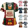 Women's Christmas Print V-Neck Double Pocket Short Sleeves Hem Slit Uniform And Caregiver Top