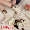 1/4Pairs Kawaii Cartoon Cat Socks Winter Women Girls Warm High Quality Fashion Middle Tube Socks Soft Comfortable Cotton Socks