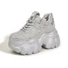Fashion Shiny Rhinestone Chunky Platform Sneakers Trendy Bling Design, Ultra-Thick Sole Women’s Shoes for Street Fashion & Party Styling