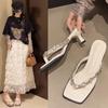 Fashion Shoes Transparent Slippers Slipers Women Square heel Slides Jelly Flip Flops Fashion 2025 Summer Block Glitter Luxury Crystal
