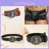 Women Double Button Faux Leather Belt With Floral Decor For Office Casual Wears
