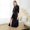 Women's Solid Color Silk-Like Pajama Robe - Long, Sexy Tie-Up Bathrobe & Loungewear