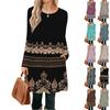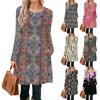 Women's Long Sleeve Pleated Round Neck Floral Print Casual Dress With Pockets