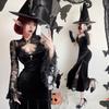 Black Lace Mesh Witch Tailcoat Dress Costume For Halloween Party Events Cosplay
