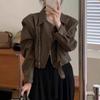 Autumn Winter Street Style Loose Casual Polo-neck PU Leather Zipper Jacket Women Y2K Hipster Cardigan Top Coat