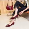 Sheepskin version~ 5cm small inner height increase French one-word buckle with patent leather Mary Jane shoes women's pointed head shallow mouth si