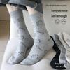 Trendy Socks with English Letters, Cartoon Cuteness, Cats, Fabric Labels, Mid-calf Socks, College Style, and Long Socks