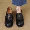 Leather camellia lazy loafers women's 2025 new autumn retro British one-pedal small leather shoes single shoe trend