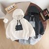 Introducing a trendy two-piece outfit perfect for the upcoming school season. This boys' autumn sweatshirt set features an eye-catching Korean style that blends comfort with fashion. The ensemble includes a long-sleeve top crafted from soft, durable corduroy, ensuring warmth and style during cooler months. Ideal for any school day or casual outing, this outfit is designed to provide a cozy yet stylish look for your little one this fall.