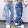 2025 Women’s High-Waisted Lace Patchwork Wide-Leg Denim Pants
