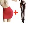 2PCS/SET Women High Waist Pencil Mini Skirts+Stockings Dress Set,Sexy Casual Wrap Hips Black Short Skirt and Pantyhose