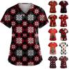 Uniforme de trabalho feminino com estampa de Natal, uniforme de trabalho com decote em V e bolso protetor