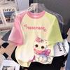 Tricou cu grafică pisică de desene animate pentru fete, cu imprimeu, de vară, casual pentru femei, pentru exterior, pentru copii, cu mânecă scurtă, îmbrăcăminte