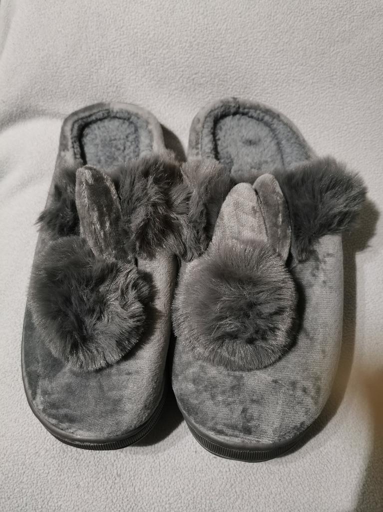 Šedé papuče so zajačími ušami a veľmi pevnou podrážkou. 👍 Odporúčanie na nákup