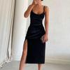 High Slit Bodycon Dress for Women Sleeveless Spaghetti Strap Going Out Midi Dress Sexy Cowl Neck Party Cocktail Dress