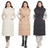 Жіночі довгі пухові жилети, толстовка без рукавів, пухова куртка на блискавці з поясом, верхній стьобаний пуховик